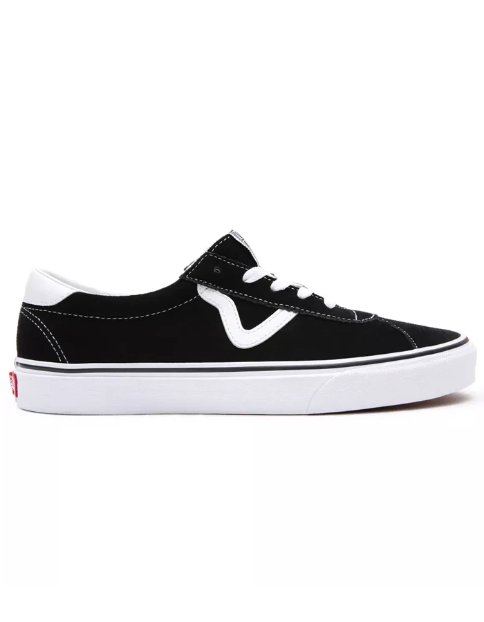 The Suede Vans Sport is a retro lace-up style featuring sturdy suede uppers with leather accents, old school V sidestripes, padded collars, and signature rubber waffle outsoles.